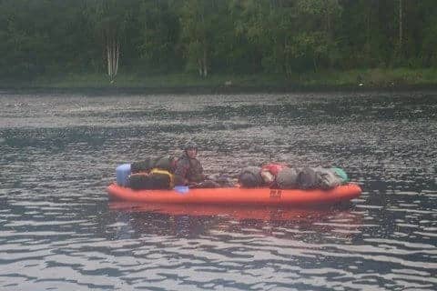 Хочу похвастаться своей лодкой. На данной фотографии на лодку погружены вещи группы из 8 человек, около 250 кг. С таким грузом я прошел реку Суна от Линдозера до Гирваса. По лоции пороги 1-2 категории, по ощущениям не более 1к.с. По впечатлениям опасность представляет только боковой прижим.